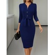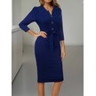 Nnstartshopping Kadın Uzun Kollu Düğme Detaylı Kendinden Kemerli Ithal Krep Elbise Lacivert