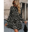 Nnstartshopping Kadın Uzun Kollu Yakadan Bağlamalı Beli Lastikli Şardonlu Dalgıç Elbise Gri