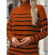 Nnstartshopping Kadın Uzun Kollu Yarım Balıkçı Yaka Çizgilitriko Mini Boy Elbise Kemersiz Turuncu