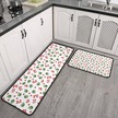 Noel Desenli 2'li Mutfak Matı, Anti-yorgunluk, Yastıklı Ve Kaymaz, Mutfak Ve Ofis İçin Noel Yemiş Yaprağı