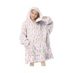 Noel Temalı 6-13 Yaş Çocuk Giyilebilir Battaniye Hoodie, Kalın Peluş, Büyük Boy-a71 Krem - Pembe
