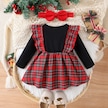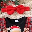 Noel Yenidoğan Bebek Bebek Kız Giysileri Setleri Örgü Romper Ekose Geyik Etekler Kafa Bandı Noel Kostümleri Kıyafetler Kırmızı