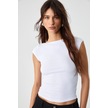 NOEMI Kadın Balerin Yaka Kısa Kol Slim Fit Ribanalı Beyaz Bluz