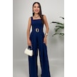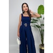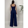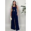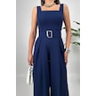 Noir Flow Kadın Lacivert Kemerli Askılı Bol Paça Tulum Zarif Şıklık Lacivert