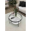 Nordic Orta Sehpa Temperli Cam 75 Cm Demonte Çizilmez Kırılmaz Metal Çerçeve Raflı Minimalist Sehpa - Beyaz Beyaz