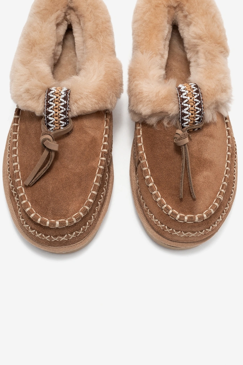 Norıel Toprak Süet Hakiki Deri Dikişli Kürklü Kadın Makosen Terlik Toprak