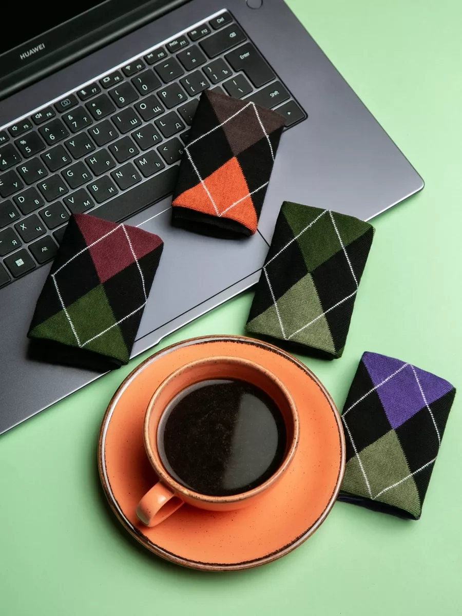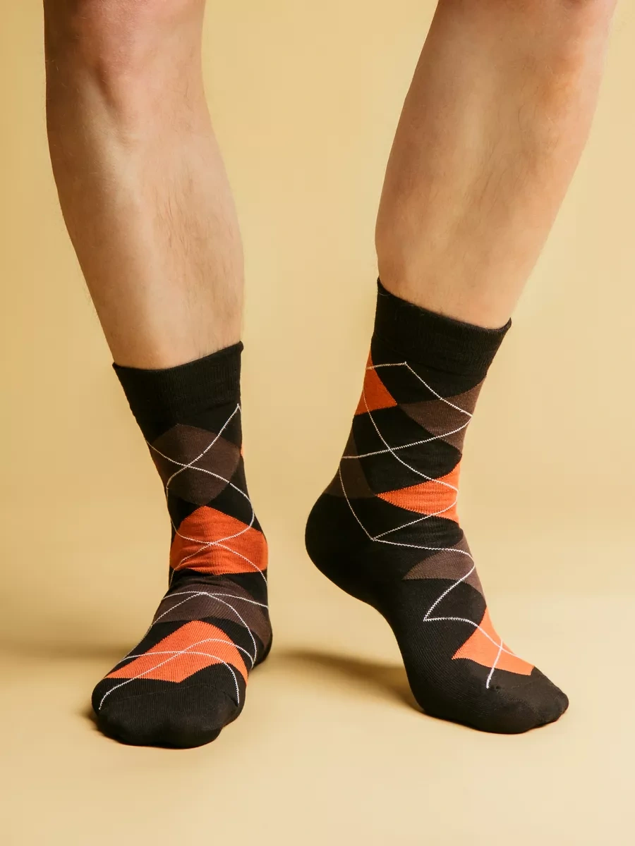 6'lı Organik Pamuklu Dikişsiz Erkek Çok Renkli Desenli Çorap (448387586) Turuncu