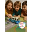 Nostaljik Halk Otobüsü 11 Cm Pilli Sesli Işıklı Kapısı Açılır Yumuşak Tekerlekli - Mavi