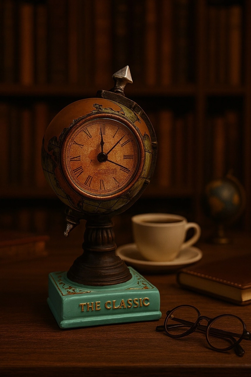 Nostaljik Klasik Prestijli Çalışma Masanıza Masa Saati Biblosu Dünya Küresi Antika Saat 19 Cm-y Renkli