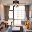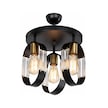 Doğal Eskitme 3'lü Ahşap Kare Çerçeveli Avize Siyah Zincir Askı