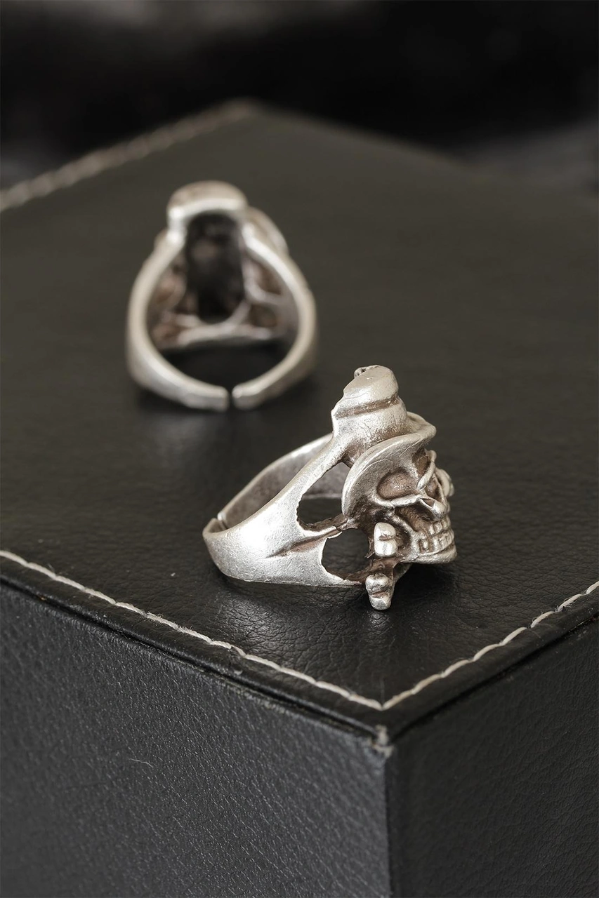 Nova Bazaar Kuru Kafa Tasarımlı Eskitme Gümüş Renkli Ayarlamalı Model Erkek Yüzük Antik Gümüş