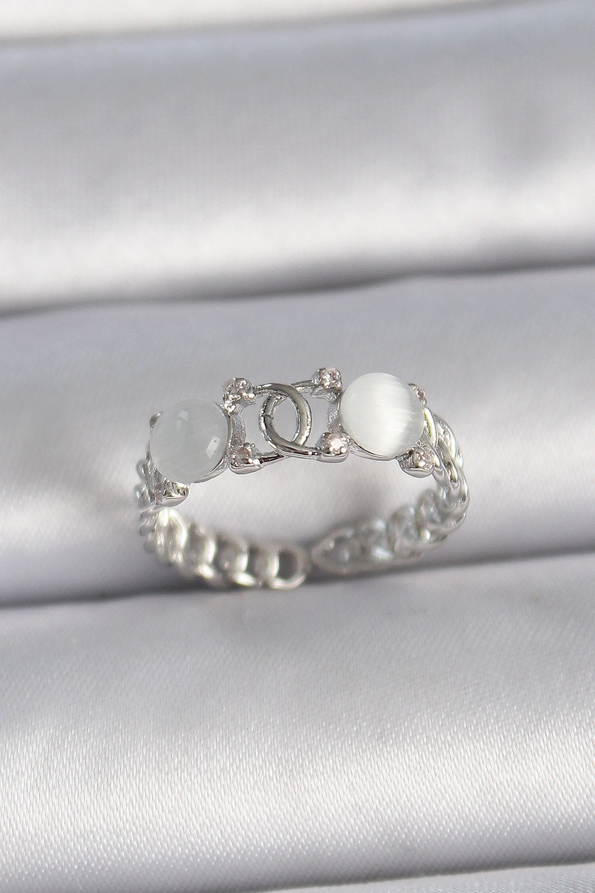 Nova Bazaar Pirinç Gümüş Renk Ayarlanabilir Zirkon Taşlı Beyaz Mineli Birleşik Halka Model Kadın Yüzük Gümüş