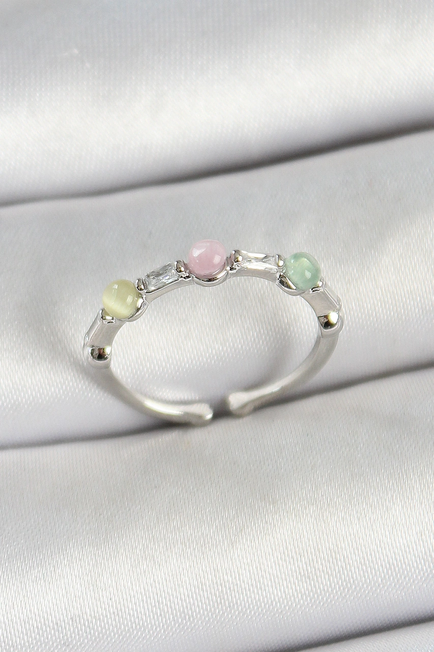 Nova Bazaar Pirinç Sıralı Boncuk Figürlü Zirkon Taşlı Gümüş Renk Ayarlanabilir Kadın Yüzük Çok Renkli