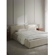Nova Karyola Baza Başlık Set 160x200 Cm. Kırık Beyaz Keten Kumaş Montaj Dahil