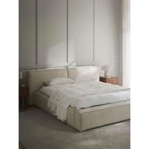 Nova Karyola Baza Başlık Set 180x200 Cm. Kırık Beyaz Keten Kumaş Montaj Dahil