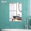 Novahub 4 Adet 42x27cm Dikdörtgen Akrilik Ayna Sticker, Gümüş Renk, Stereo Duvar Stickerları Diğer