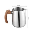 Novahub 600/1000 Ml Beyaz Paslanmaz Çelik Süt Köpürtme Sürahi Ahşap Saplı Fincan Kahve Espresso Cappuccino