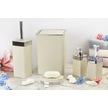 Novahub Akrilik Gümüş Çizgi Krem Rengi 5'li Soft Kare Banyo Takımı Seti Krem Krem