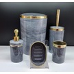 Novahub Akrilik Yuvarlak Banyo Seti Antrasit Gri Mermer Gold Kromaj 5'li Gri Gri