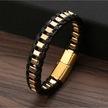 Novahub Altın Erkekler İçin Hakiki Deri Zincir Bileklik Kaplama Takı Paslanmaz Çelik Toka Altın 21.5cm Kişiselleştirilmiş Altın