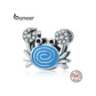 Novahub Bamoer Gerçek 925 Ayar Gümüş Komik Yengeç Temizle Cz Mavi Emaye Göz Alıcı Boncuk Fit Kadın Bilezikler Gümüş