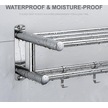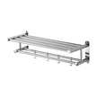 Novahub Çift Katmanlı Banyo Rafları, 4 Kancalı Havluluk, Duvara Monte, 23cm, Pratik Banyo Askısı Gümüş