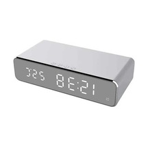 Novahub Çok Fonksiyonlu Kablosuz Şarj Saati: Led Ekran, Termometre, Alarm, Gece Lambası, Gümüş Renk, Masaüstü Şarj Ve Saat