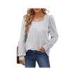 Novahub Gmxıa Kadın Modası Rahat Yaz Düz Renk Baskı Uzun Kollu U Yaka Bluzlar Ve Gömlekler Açık Gri - M Açık Gri