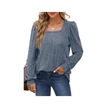 Novahub Gmxıa Kadın Modası Rahat Yaz Düz Renk Baskı Uzun Kollu U Yaka Bluzlar Ve Gömlekler Mavi - L Mavi