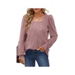 Novahub Gmxıa Kadın Modası Rahat Yaz Düz Renk Baskı Uzun Kollu U Yaka Bluzlar Ve Gömlekler Pembe - S Pembe