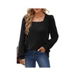 Novahub Gmxıa Kadın Modası Rahat Yaz Düz Renk Baskı Uzun Kollu U Yaka Bluzlar Ve Gömlekler Siyah - 2xl Siyah