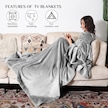 Novahub Gri Kollu Giyilebilir Battaniye, Yumuşak Polar Snuggy Battaniye Atma Şal, Ön Cepli Rahat Vücut Battaniyesi Gri Gri