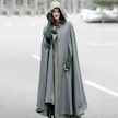 Novahub Gri Sonbahar Kış Gotik Trendy Maxi Kapşonlu Yün Pelerin Hırka Ceket Maxi Kaşmir Hoodie Uzun Pelerin Kostüm Cosplay Giyim Gri - S Gri