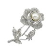 Novahub Gümüş Kadın Gül Çiçek Sahte İnci Taklidi Broş Pin Gelin Düğün Takı Hediye Gümüş Gümüş