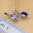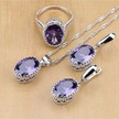 Novahub Gümüş Renk Beyaz Kristal Mor Kübik Zirkonya Takı Seti Kadınlar İçin 4 Adet, Gelin Takı Seti, Küpe, Kolye, Yüzük, 7 Halka Boyutu Mor