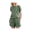 Novahub Kadın İki Parça Takım Pamuklu Keten Yazlık Eşleşen Salon Takımı Rahat Takım Haki - 3xl Haki
