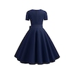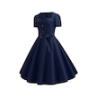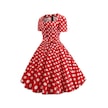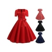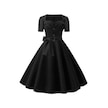 Novahub Kadın Retro Elbise, 1950'ler Vintage A-line, Kare Yaka, Kısa Kollu, Siyah, Nokta Baskı, Orta Bel Kuşaklı, Fiyonk Dekor Siyah