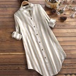 Novahub Kadınlar Zarif Uzun Kollu Düğmeler Aşağı Gömlek Rahat Bahar Sonbahar Bluz Çalışma Blusas Kadın V Boyun Şerit Düzensiz Tunik Tops Haki - Xs Haki