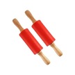 Novahub Kırmızı 2 Adet Küçük Merdaneler Çocuk Dıy Pişirme Aracı Gıda Sınıfı Silikon Yapışkan Ol Ahşap Saplı Pürüzsüz Kenar Oklava