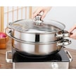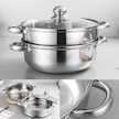 Novahub Paslanmaz Çelik Sebze Buharlı Pişirici Tava Seti - Şeffaf Gıda Ocak Pot Çift Kazanlar Sos Single-pot Tencere Seti Gümüş