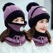 Novahub Üçü Bir Arada Kış Kadın Tek Parça Şapka Artı Kadife Sıcak Pamuk Maske Şapka Yün Kap Baotou Önlük Mor Mor