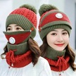 Novahub Üçü Bir Arada Kış Kadın Tek Parça Şapka Artı Kadife Sıcak Pamuk Maske Şapka Yün Kap Baotou Önlük Yeşil Yeşil