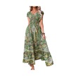 Novahub Yaz Derin V Yaka Kısa Kollu Maxi Elbise Bohemia Renkli Baskı Elastik Yüksek Bel Fırfır Dikiş Hem A-line Plaj Elbisesi Haki - M Haki