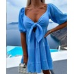 Novahub Yaz Kadın Elbisesi Moda Peplum Bağlamalı V Yaka Kısa Kollu Elbiseler Mavi - L Mavi