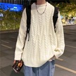 Novahub Yeni Erkek Moda Giyim Örgü Kazak Polar İlkbahar Sonbahar Gevşek Düz Renk Gençler Erkek Için Tops Kazak Uzun Kollu Kalın Erkek Kazak Beyaz - M Beyaz