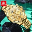 Novahub Yeni Moda Lüks Quartz Saat Erkek Üç Göz Kronograf Kadran Paslanmaz Çelik Su Geçirmez Işıklı İş Saati Altın - Yeşil Altın - Yeşil