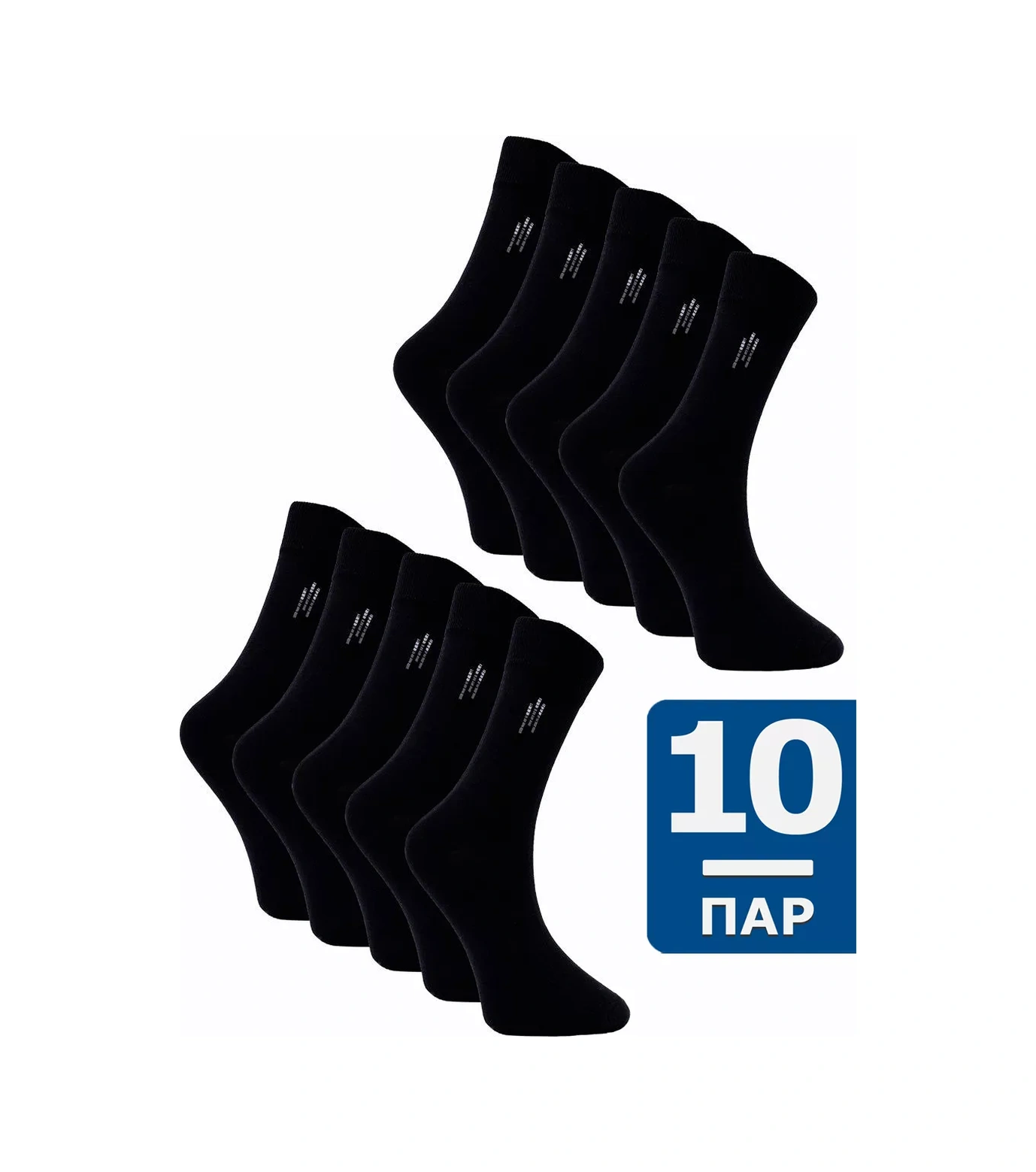 Novomoskovskij Trikotaz Erkek Çorapları Seti 10 Çift, Yüksek Bilekli, %100 Pamuk, Düz Renkli 10932709 Siyah