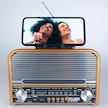 Ns-6678 Retro, Nostaljik, Ahşap Led Işıklı Müzik Seti Fm Radyo Usb Mp3 Player Bluetooth Hoparlör Tasarım-447