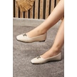 Nstil Günlük Kadın Babet V Tokalı Kısa Topuk Küt Burun Hafif Rahat Kalıp Tırtık Taban Ayakkabı 395 Bej