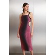 Nuala Kadın Tül Mesh Kumaşlı Astarlı Yandan Dekoltelı Degrade Desenli Kırmızı - Pembe Elbise